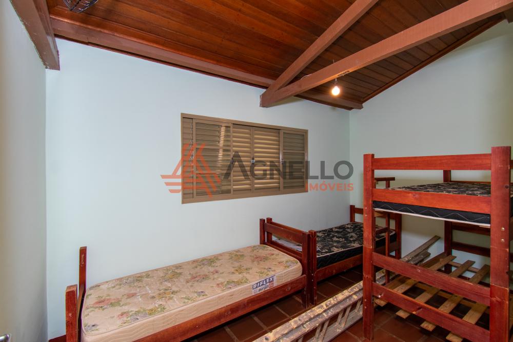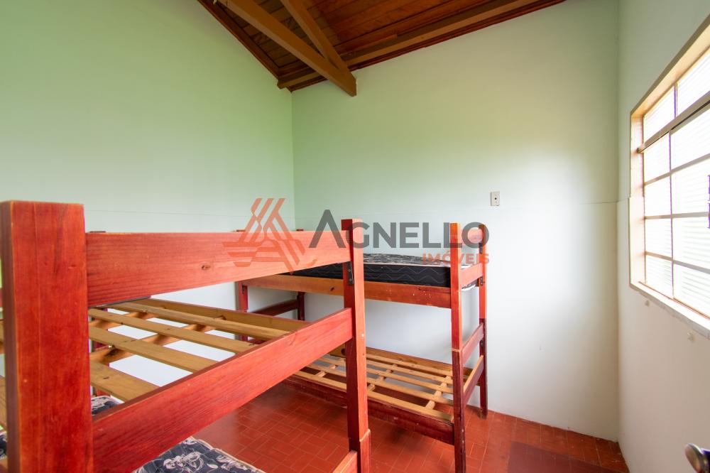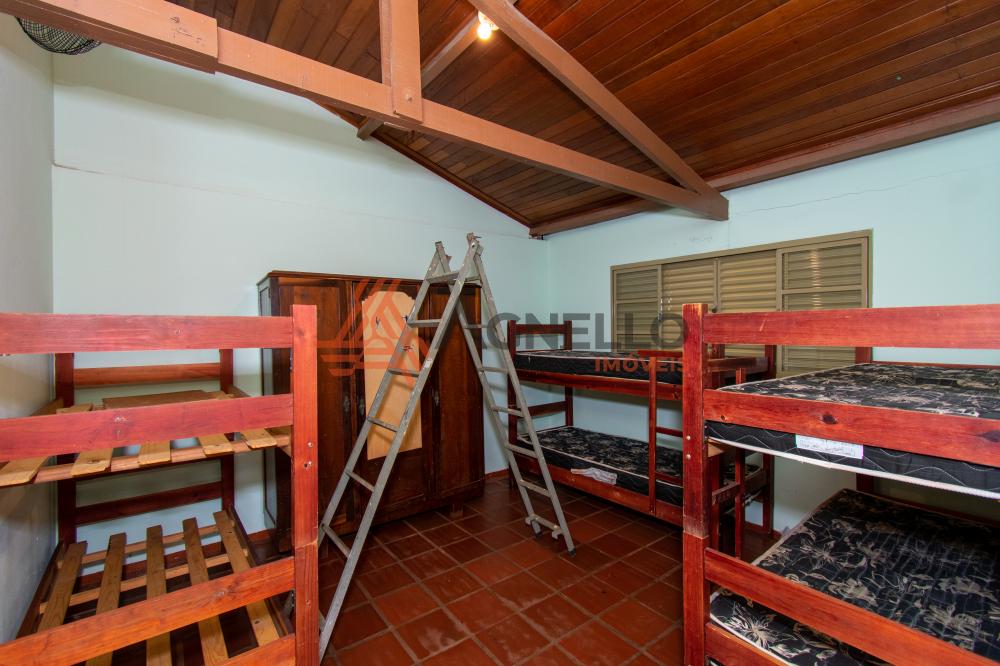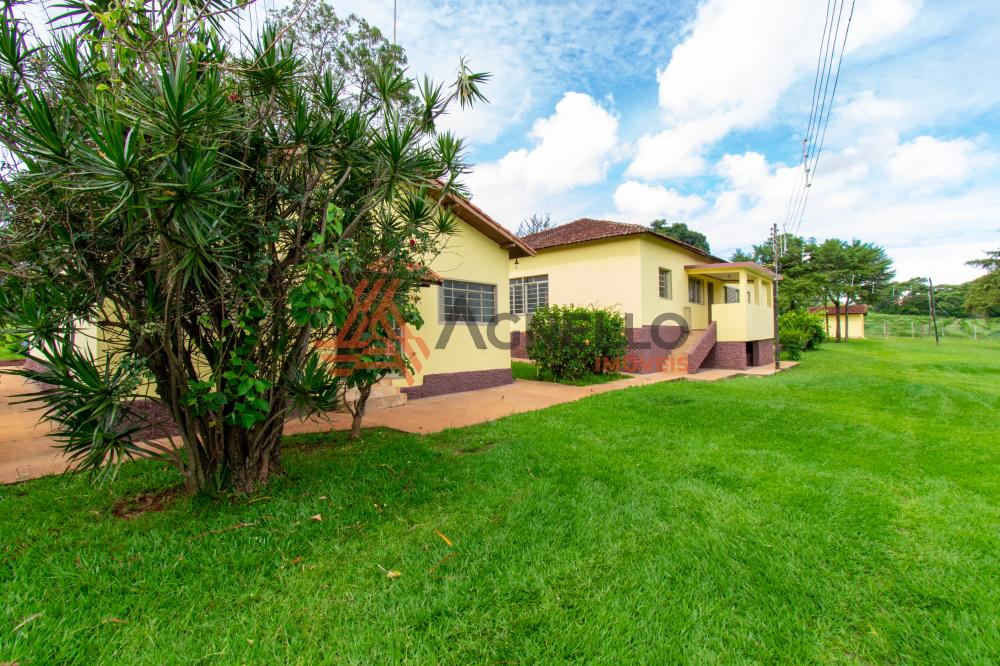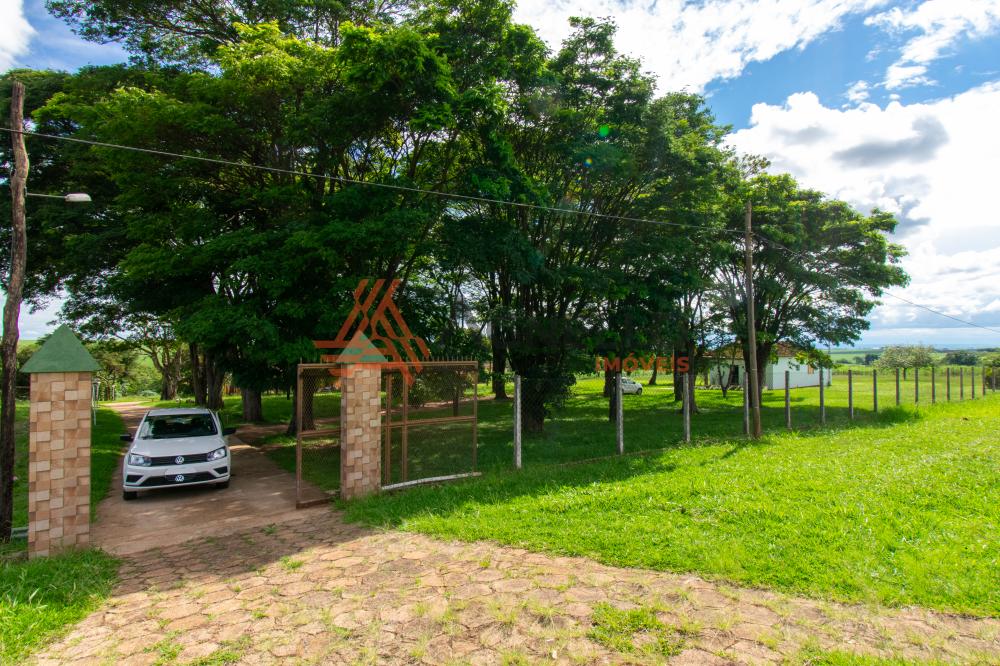 Chácara com três casas e ampla área de lazer com piscina, quiosque, vestiário, jardim, pomar, salão de festas com cozinha industrial, dois banheiros, dois dormitórios e ampla varanda com cozinha de apoio.